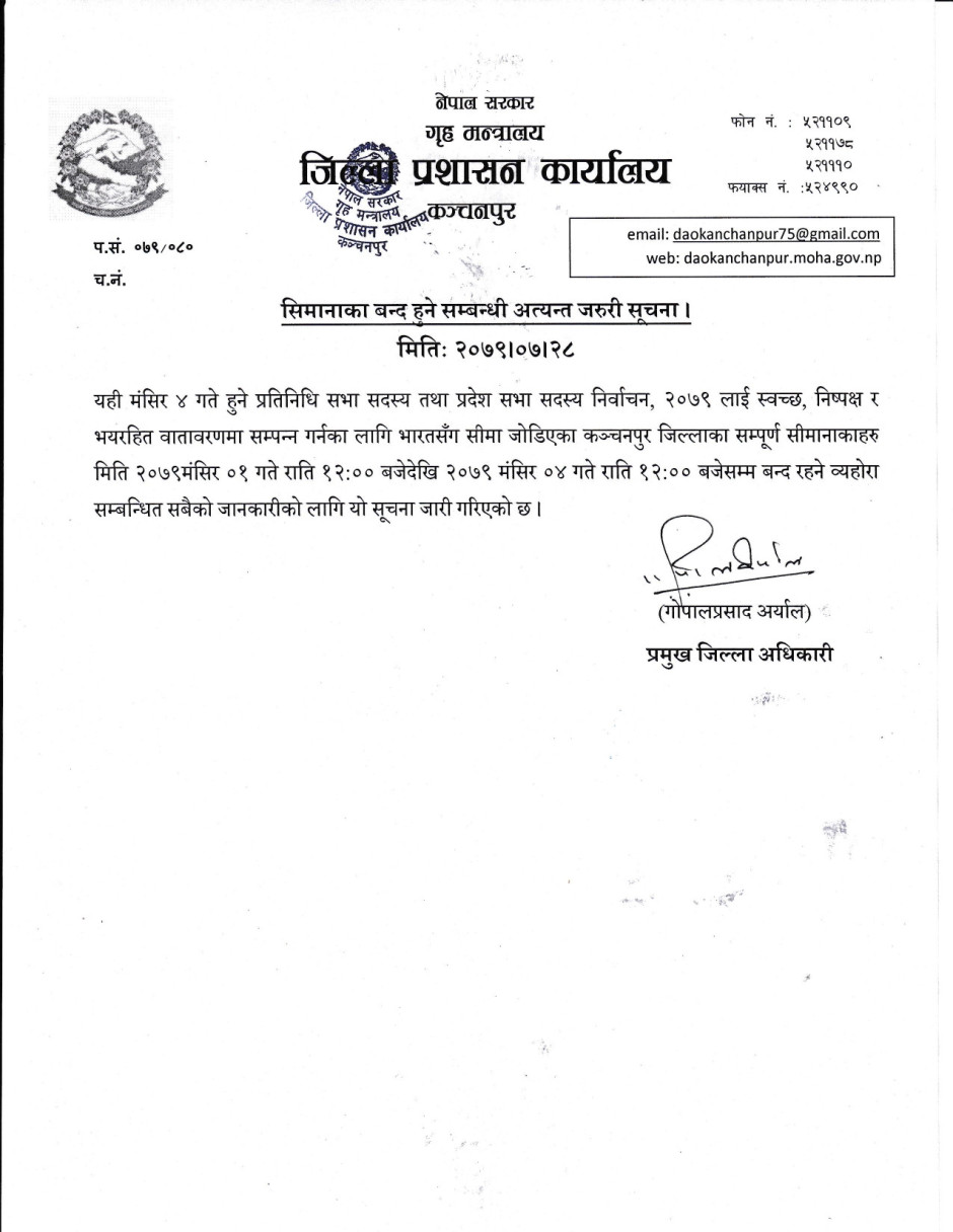 © सर्वाधिकार सुरक्षित जिल्ला प्रशासन कार्यालय, कन्चनपुर .