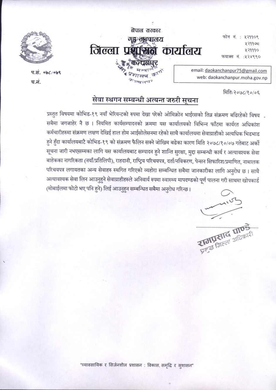 जिल्ला प्रशासन कार्यालय, कन्चनपुर
