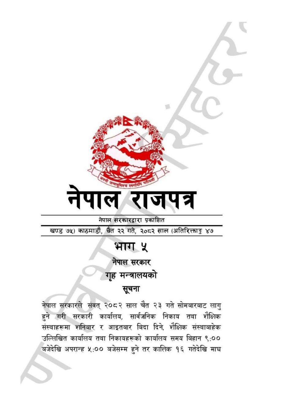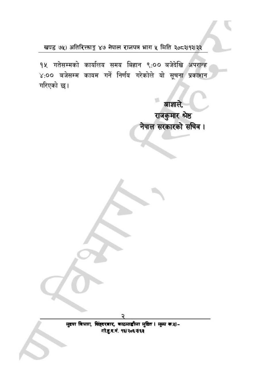सरकारी कार्यालय, सार्वजनिक निकाय र शैक्षिक संस्थाहरुको कार्यालय समय सम्बन्धी सूचना ।