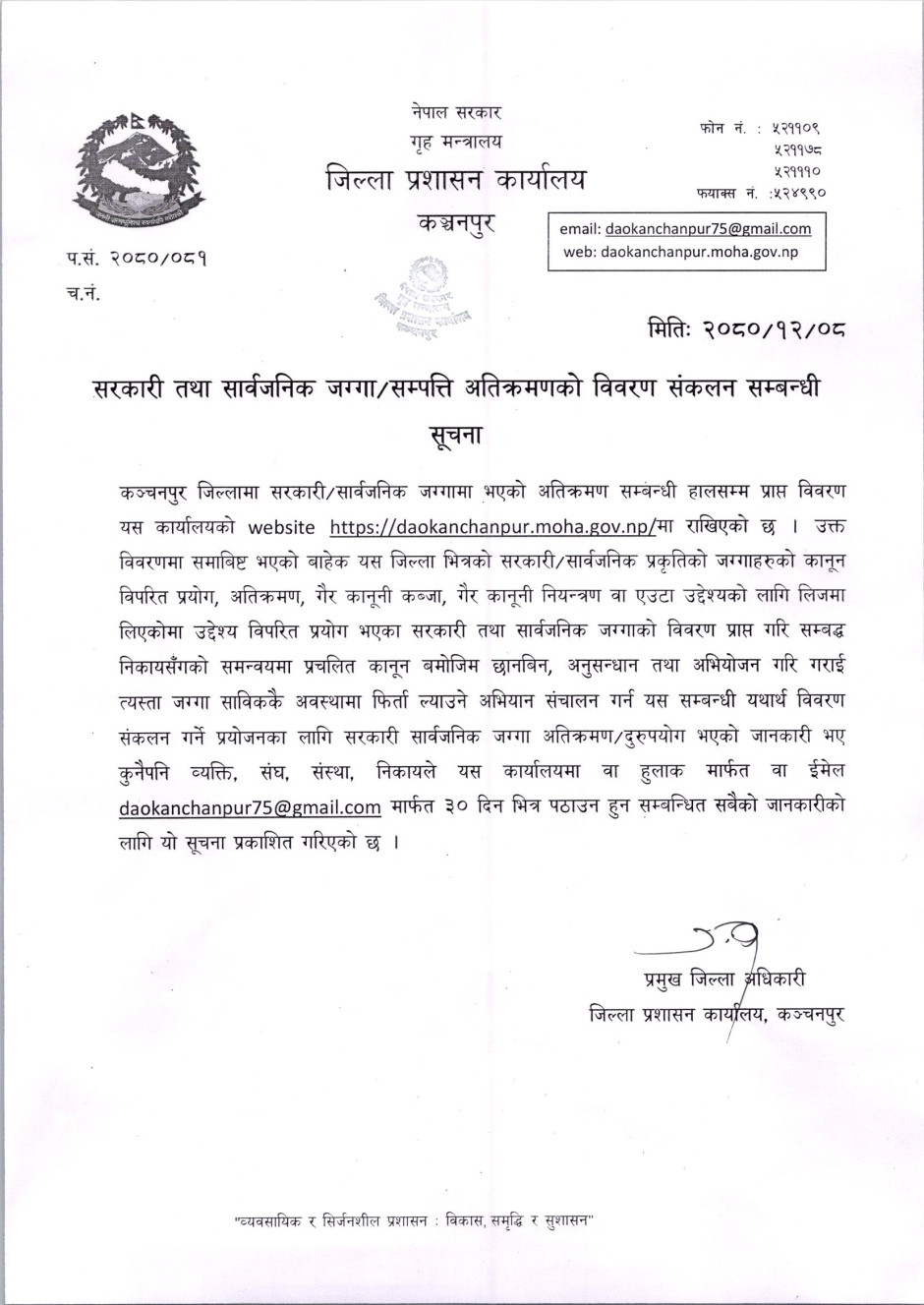 © सर्वाधिकार सुरक्षित जिल्ला प्रशासन कार्यालय, कन्चनपुर .