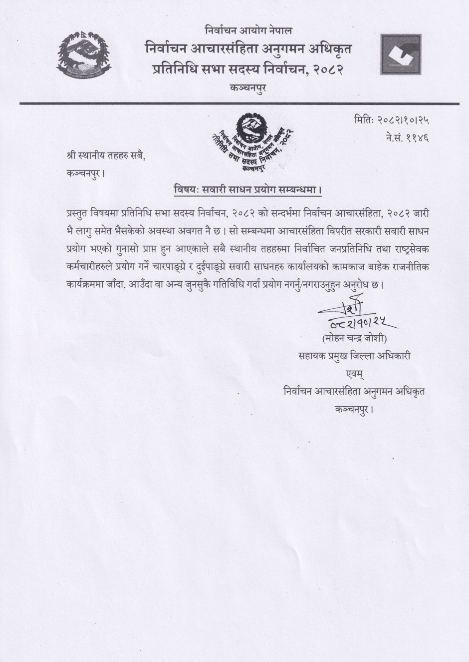 मतदानका दिन सवारी साधन सञ्चालन सम्बन्धी जरुरी सूचना ।