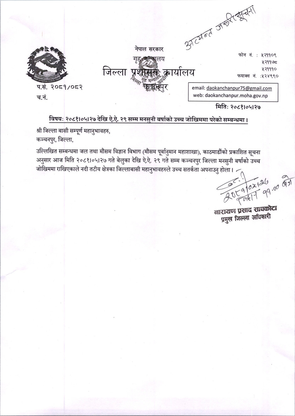 © सर्वाधिकार सुरक्षित जिल्ला प्रशासन कार्यालय, कन्चनपुर .