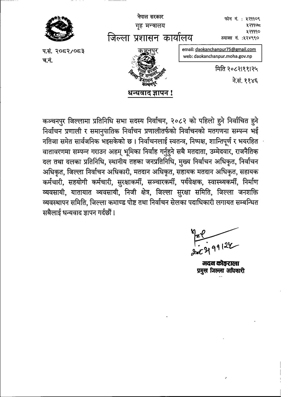 © सर्वाधिकार सुरक्षित जिल्ला प्रशासन कार्यालय, कन्चनपुर