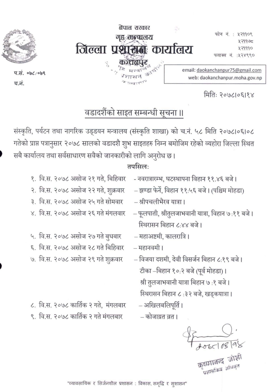 वडादशैंको साइत सम्बन्धी सूचना !!! !!!
